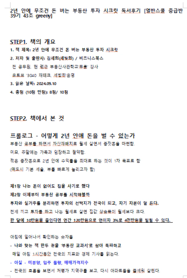 독서후기 {2년 안에 무조건 돈 버는 부동산 투자 시크릿] greeny