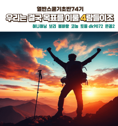 열반스쿨 기초반 4강 강의 후기 [열반스쿨 기초반 74기 4조 코농] 우리는 결국 목표를 이룰 4람들이조^^