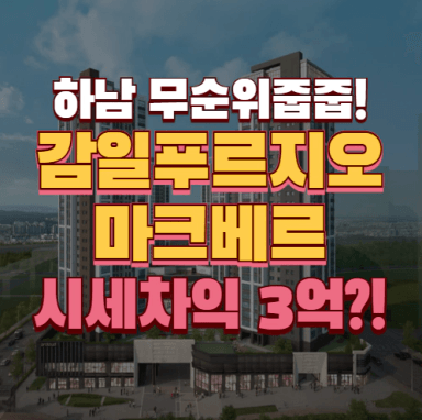 [하남시 부동산] 감일 푸르지오 마크베르 무순위 경쟁률 공개(시세차익, 4억 줍줍, 58만명 몰려)