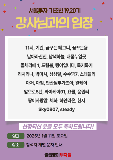 [서기 1번의 투자로 9년 후 3배 수익나조! 부 준] 2주차 강의 후기 (권유디 튜터님)