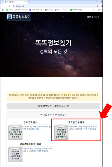 [딘두기] 총인구수, 세대당 인구수, 인구 통계, 평균 연령 여기서 보세요!! 놀라운 디테일까지!!!!!