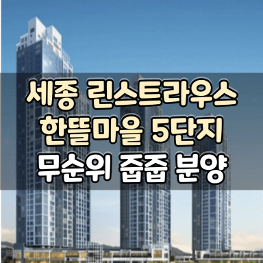 시세차익 최소 4억이상, 세종 린스트라우스 한뜰마을 5단지 무순위 줍줍 분양정보