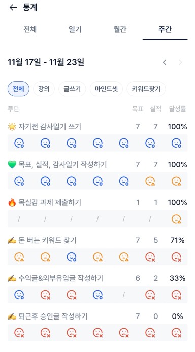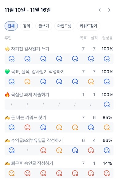 [민즈풀] 월부월백 챌린지의 11월 1주차 목실감 인증!