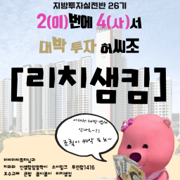 부동산 공부하는 리치샘킴입니다. 늦은 나이에 부동산 공부하고 있지만 남은 시간 열심히 한다면 충분히 노후대비 할 수 있다는 생각으로 하고 있습니다. 목표 달성을 위해 열심히 달려가는 샘킴이 될거예요! 화이팅!