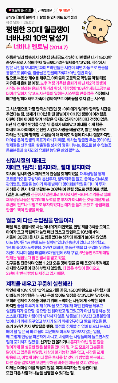 레키 칼럼요약 - 평범한 30대 월급쟁이 너바나의 10억 달성기 (너바나 멘토님) #175