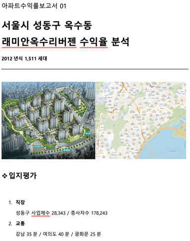 성동구 옥수동 래미안옥수리버젠 수익률 분석 보고서 [열반스쿨 기초반 68기 20조 코펜