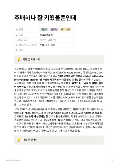 [프로 참견러] 2026-#12 후배하나 잘 키웠을 뿐인데 독서후기