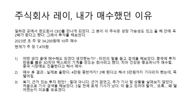 주식회사 레이, 내가 매수하고 싶었던 이유