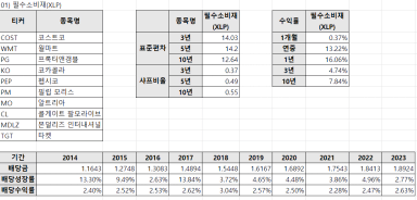 미국주식 필수소비재섹터 TOP10 배당금과 배당성장률, 배당수익률