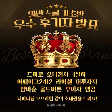 [명예의 전당] 열반스쿨 기초반 유튜브/SNS 우수 후기자 발표 (매주 금요일 오전 11시)