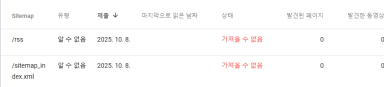 사이트맵 서치콘솔에서 사이트맵 등록이 안돼요.