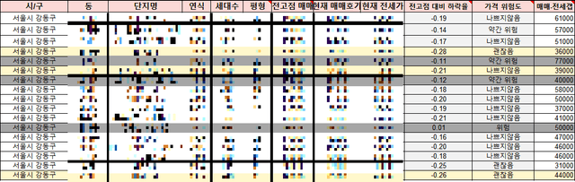 너나위님이 알려주신 방법으로 전고점 대비했을때 가격이 비싼 위험한 아파트들은 입지가 좋다던지, 호재가 작용하여 가격상승이 있었기에 가격이 많이 상승한 아파트 들이었다. 이에 비해 여전히 전고점 대비 가격 상승폭이 적은 아파트들도 같은 지역 내에 있다는 것을 알게 되었으며, 입지가 괜찮으면서도 상승폭이 적다고 판단되는 아파트들 중에서 내 예산(4억)으로 매수
