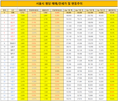 [실천하는호랑이] 서울시 25개구 평당 전세가/매매가, 전세가율, PIR지수 트래킹(2024년 3월)