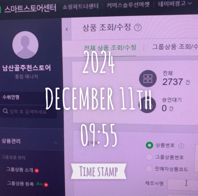 (남산골부자)의 매출업 챌린지 3주차🔥 첫번째 매출업 챌린지 미션 인증 [Before] 챌린지 시작 전 상품 등록 : 2596개 [After] 현재 상품 등록 수 : 2737개(+141개) [Final] 최종 목표 달성률 : 39.6% (=1190/3000개) *100) [인증 사진 첨부] ※ 일자와 시간까지 함께 기록할 수 있는 ‘타임 스탬프’ 어플을