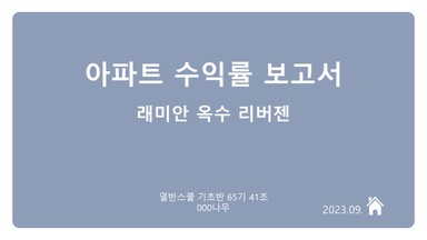 강남구 대치동 래미안 1차 아파트 수익률 분석 보고서 [열반스쿨 기초반 65기 41조 런던]