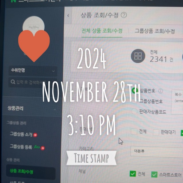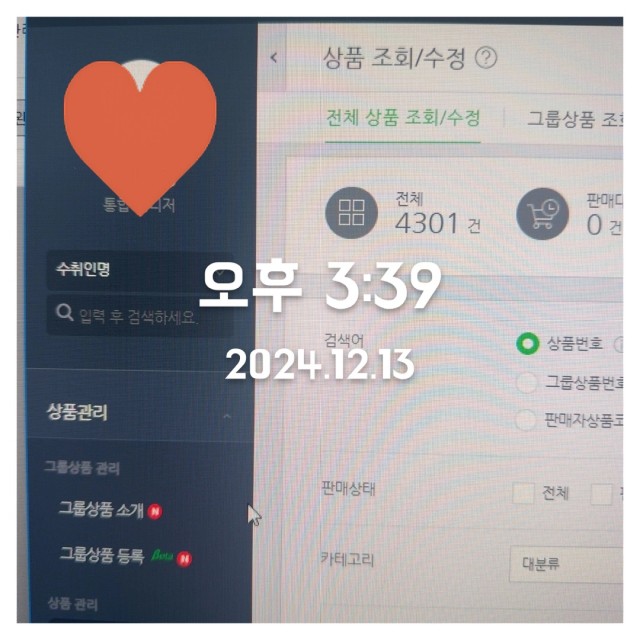 [Before] 챌린지 시작 전 상품 등록 : 1974개 [After] 현재 상품 등록 수: 4301개 [Sum] 현재 누적 상품 등록 수: +2327개 [Final] 최종 목표 달성률 : 77.57% [인증 사진 첨부]