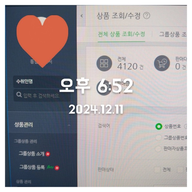 [Before] 챌린지 시작 전 상품 등록 : 1974개 [After] 현재 상품 등록 수: 4120개 [Sum] 현재 누적 상품 등록 수: +2146개 [Final] 최종 목표 달성률 : 71.53% [인증 사진 첨부]