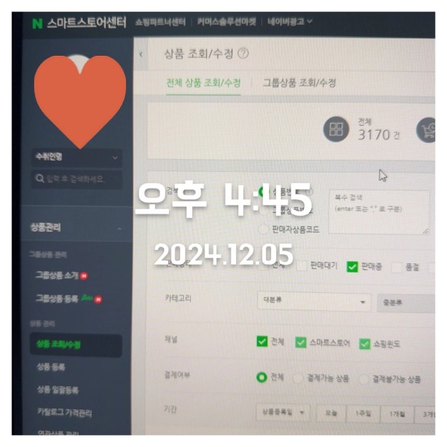 (리나옹)의 매출업 챌린지 2주차🔥 첫번째 매출업 챌린지 미션 인증 [Before] 챌린지 시작 전 상품 등록 : 1974개 [After] 현재 상품 등록 수: 3170개 [Sum] 현재 누적 상품 등록 수: +1196개 [Final] 최종 목표 달성률 : 39.87% [인증 사진 첨부]