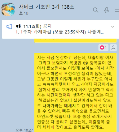 [재테크 기초반 3기 138조 영프로] 1차 조모임 30분전 쓰는 강의 후기!!!
