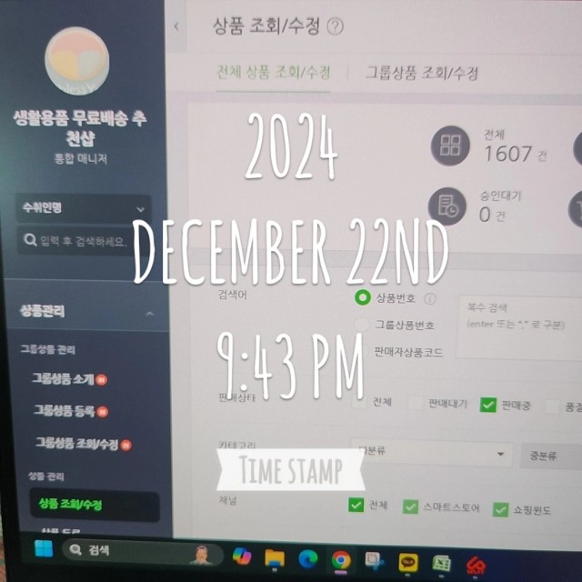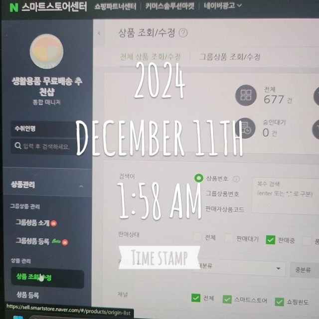 멋진견우의 매출업 챌린지 워밍업🔥 1단계 : 챌린지 시작 전, 현재 등록 상품 수 인증하기 ※일자와 시간까지 함께 기록할 수 있는 ‘타임 스탬프’ 어플을 활용해 인증 사진을 촬영합니다. Q. 구글 폼 제출 완료하셨나요? A. 제출 완료했습니다!!! 2단계 : 챌린지 계획 작성하기 ✅수요일(11/27)~금요일(11/29): 50개 등록 ✅토요일(11/30)