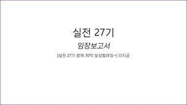 [실전 27기 함께 30억 달성할레잉~💜리치공] 실전반 최종임장보고서