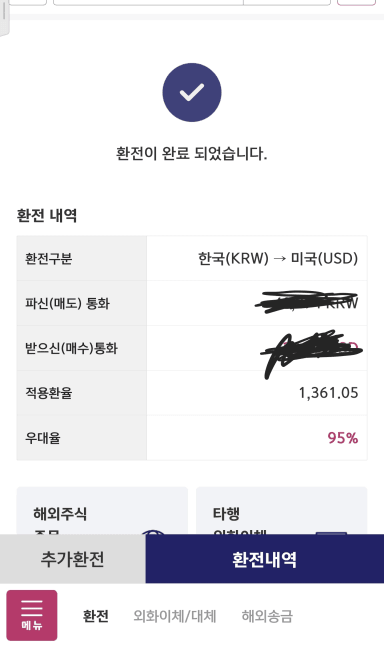 미국주식을 투자하기위한 환전 완료