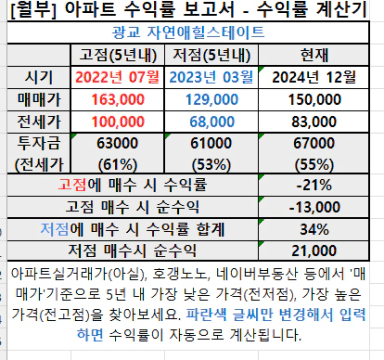 수원시이의동 광교자연앤힐스테이트 아파트 수익률보고서(열반스쿨 기초반 82기24조 4월단비)