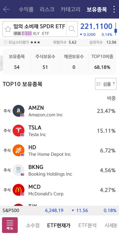 미국주식 임의소비재 섹터 TOP10 배당금과 배당성장률, 배당수익률