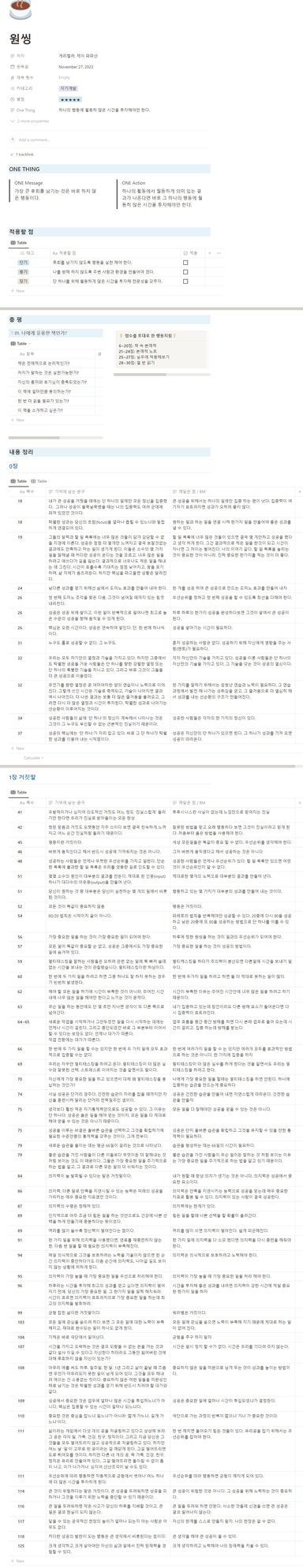 열반스쿨 중급반 원씽 독서 후기 [열반스쿨 중급반 33기 18조 조은나무]