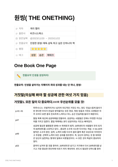 열반스쿨 중급반 원씽 독서 후기 [열반스쿨 중급반 33기 18조 모국어]