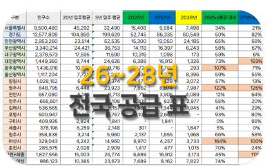 26~28년 전국 단지 공급표(수도권,지방) [임장조]