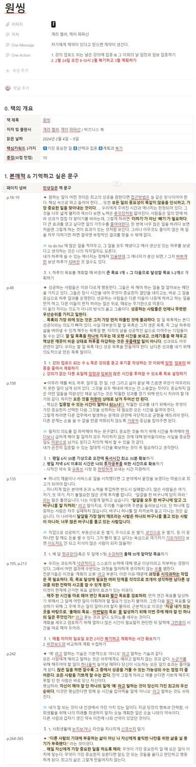 [열중 35기 158조 뭉지] 1주차 독서후기 - 원씽