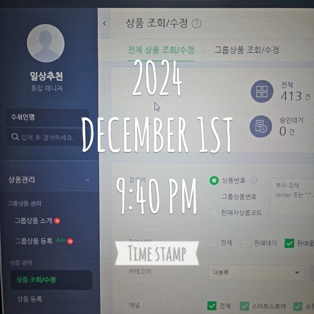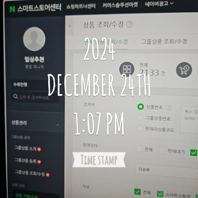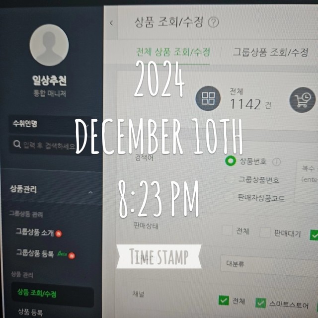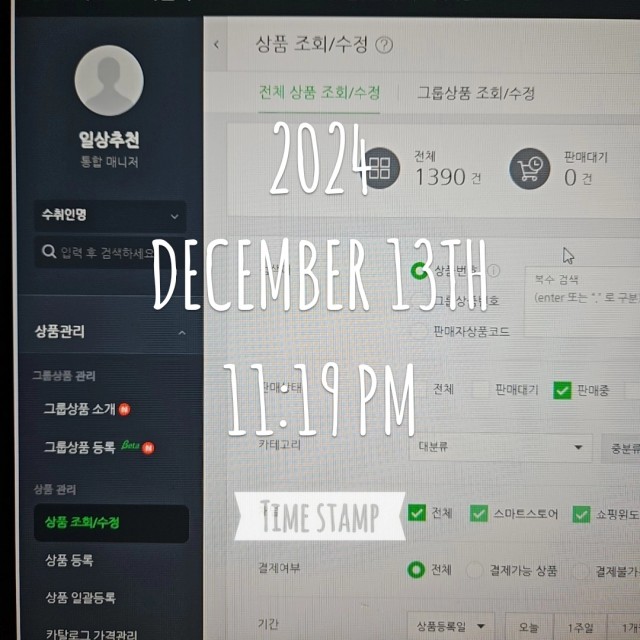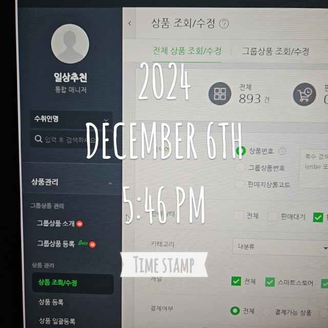 (다팜상점)의 매출업 챌린지 2주차🔥 첫번째 매출업 챌린지 미션 인증 [Before] 챌린지 시작 전 상품 등록 : 616개 [After] 현재 상품 등록 수: 277개 [Sum] 현재 누적 상품 등록 수: 893개 [Final] 최종 목표 달성률 : 29.7% [인증 사진 첨부] ※ 일자와 시간까지 함께 기록할 수 있는 ‘타임 스탬프’ 어플을 활용해 인