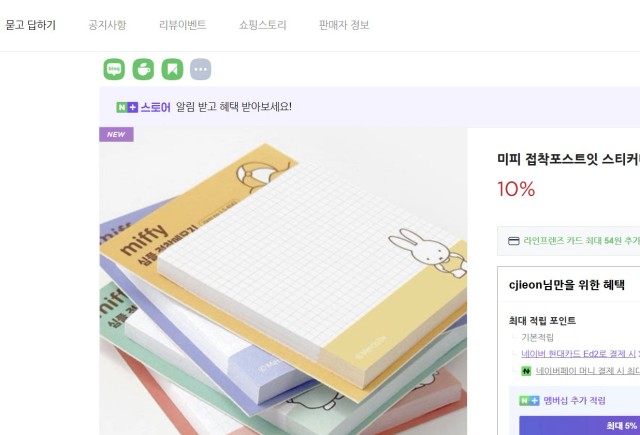 과제 제목 양식✍️ [닉네임] 스마트스토어 챌린지 Day2_팔리는 상품명, 키워드, 이미지 만들기 1. 내가 만든 팔리는 상품명과 키워드를 적어보세요✏️ 기본 상품명 내가 줄인 상품명 관련 키워드 5개 미피 심플 점착 메모지 미피 점착 메모지 포스트잇, 접착메모지, 미피굿즈, 스티커 메모지, 예쁜 포스트잇 2. 대표이미지와 겹치지 않는 이미지를 캡처 후,