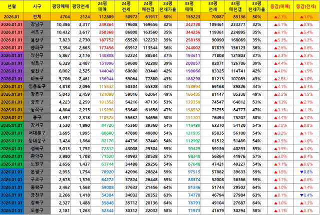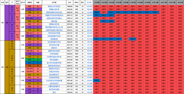 [전생] 1월 전국 랜드마크 및 생활권대장 시세(수도권)