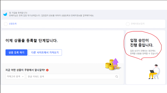 사업자등록신고 완료 통신판매업신고 완료 쿠팡판매자가입 완료 (승인 진행 중)