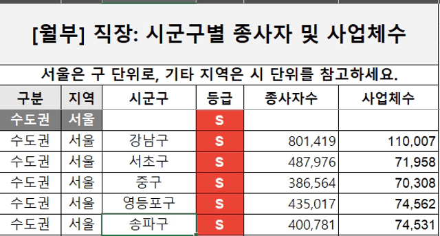 ✅아파트명 위례중앙푸르지오 (+송파꿈에그린위례2단지) ✅위치(지도) ✅입지평가 1. 직장: 애매한 S..? 송파구에 사업체수, 종사자수 모두 많은 편이나, 위례쪽은 사업체가 많지 않은 편 2. 교통: 좋다고 하기 어려움 버스 정류장 5분 거리이나, 역과의 거리가 있는 편이라 무조건 버스를 이용해야 하나, 출퇴근 시간에는 많이 막힐 듯함 주요 사업체가 위치한