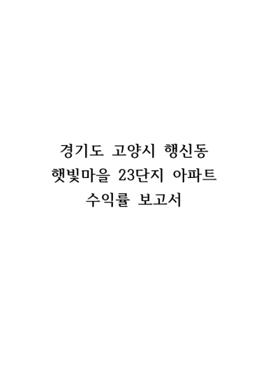 경기도 고양시 행신동 햇빛마을 23단지 아파트 수익률 보고서 (PDF 포함)