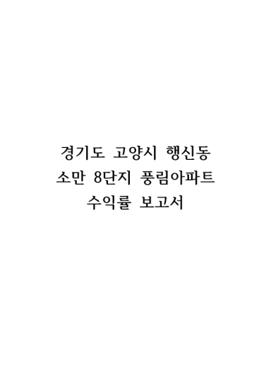 경기도 고양시 행신동 소만 8단지 풍림아파트 수익률 보고서 (PDF 포함)