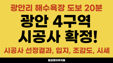 '광안리해수욕장 도보 20분' 부산 광안4구역 시공사 선정 확정! (+시공사 선정 결과, 조감도, 입지, 시세)