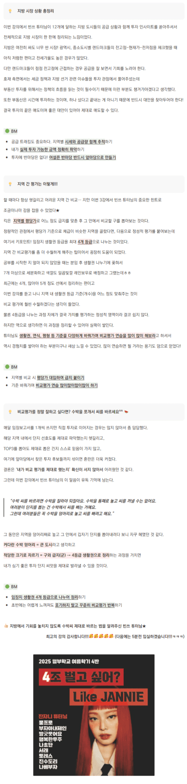 [지투 26기 일어나! 소피ㅇ1튜터님과 등7ㅣ칠 시간이야! 행복한 우주] 지방투자 실전반 1강 후기 - 하락장 지방투자로 10억 버는 방법