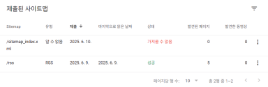사이트맵 추가 상태에서 가져올 수 없음이 변하질 않습니다 ㅠ
