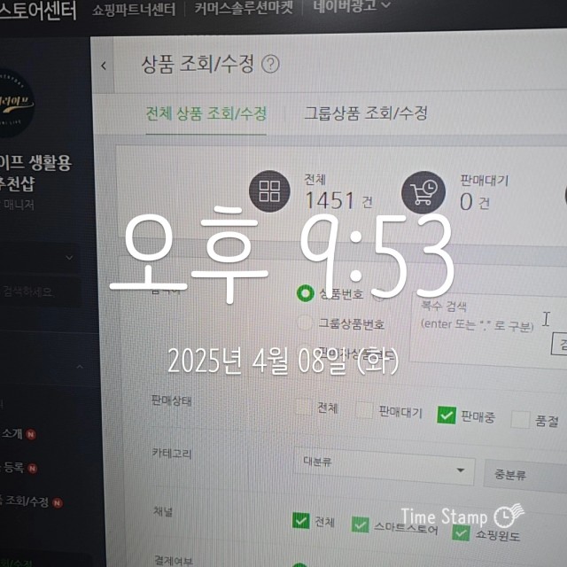 1. 이번주 나의 성장 점검표 ✅ [Before] 챌린지 시작 전 상품 등록 : 691개 [After] 현재 상품 등록 수: 1451개 [Sum] 현재 누적 상품 등록 수: +760개 (현재 상품 등록수-챌린지 시작 전 상품 등록 수) [Final] 최종 목표 달성률 : 38% (=현재 누적상품 등록수/2000개) *100) [인증 사진 첨부] ※ 일자와