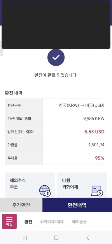 미국주식을 투자하기위한 환전 완료