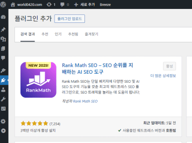 rank math SEO 검색까지는 됐는데 플러그인이 안되네요