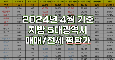 [내마45기 2조 조카인] 광역시 내집마련 지역선정을 위한 가격 정리! (2024년 4월)