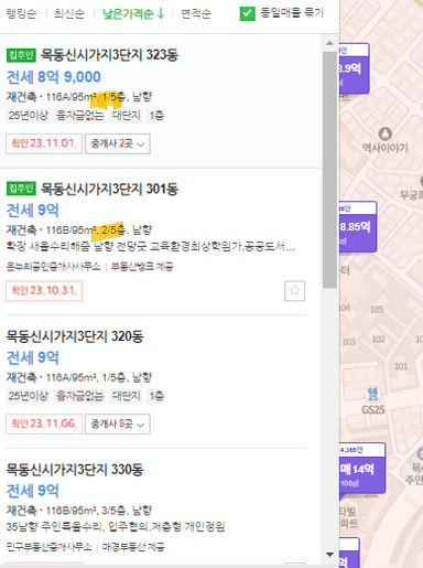 전세시세표 관련 문의