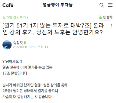 [열기65기 무릎에 4서 0ㅓ깨에 팔아 경제적자유 이루조 부유자] 열반스쿨 1주차 강의 후기 65기 40조 부유자