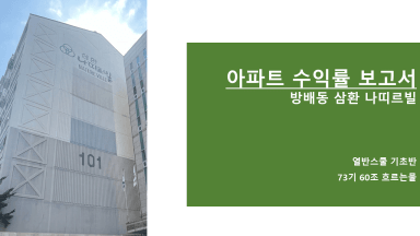 서초구 방배동 삼환 나띠르빌 아파트 수익률 분석 보고서 [열반스쿨 기초반 73기 60조 흐르는물]
