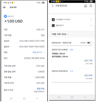 2챕터 과제 토스뱅크 국민은행 달러환전 인증